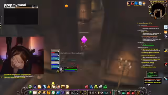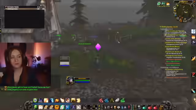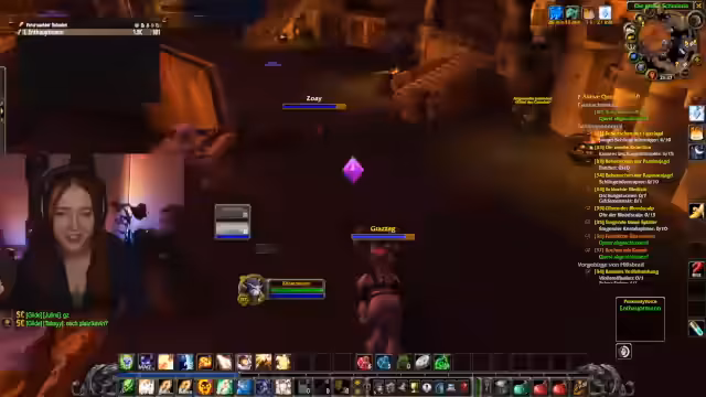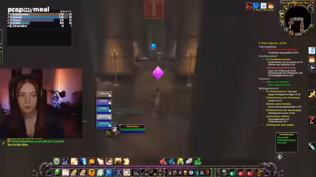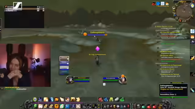 01:20:25Der Kern des Streams ist das Spielen von World of Warcraft. Die Streamerin ist im Ultra-Hardcore-Modus unterwegs und erlebt mehrere Tode, was an der Motivation zehrt. Die Koordination für gemeinsame Aktivitäten wie das 'Kloster' läuft holprig, da ein anvisierter Streamer nicht erscheint, was für Enttäuschung sorgt.