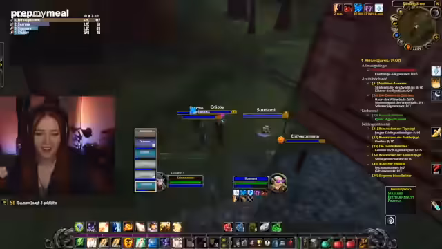 03:46:45Die Gruppe konzentriert sich nun auf die Bewältigung einer schwierigen Quest. Es werden Materialien wie Wollstoffballen gesammelt, die für den Fortschritt unerlässlich sind. Währenddessen tauchen persönliche Details auf: Ein Streamer teilt mit, dass er umgezogen ist und sein Wohnsitz nun in Azeroth ist, was im Chat für Heiterkeit sorgt. Es gibt auch eine Diskussion über einen Youtuber, der wegen eines Witzes abgemahnt wurde. Die Stimmung bleibt trotz des harten Auftrags locker und gesprächig, wobei auch der humorvolle Umgang mit Rückschlägen Teil des Streams ist.
