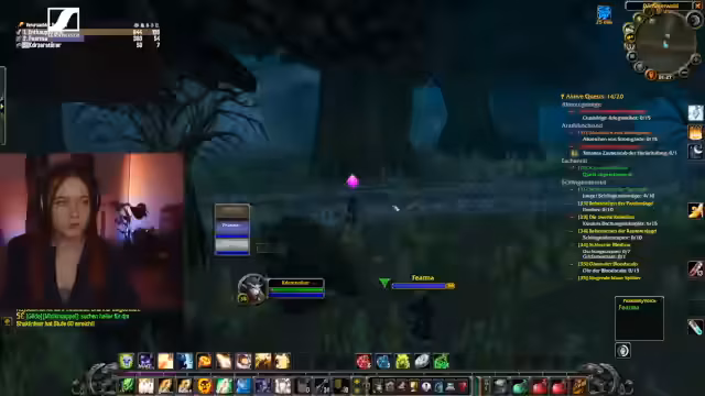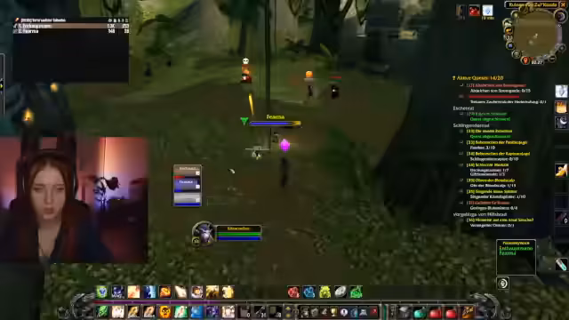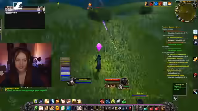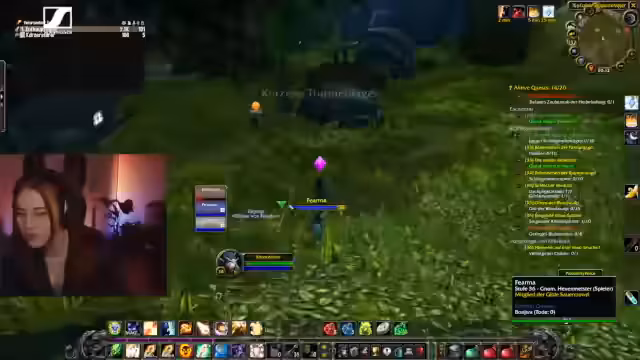 02:14:55Der Hauptfokus liegt auf dem Leveln, mit dem Ziel, Level 40 zu erreichen. Dafür wird das Gebiet Schlingendorntal als geeignetes Ziel identifiziert. Da die Route durch Gebiete mit starken Gegnern (Level 40 Gorillas) führt, wird die Route zu Fuß für zu gefährlich gehalten. Die Streamerin plant, nach Schlingendorntal zu fliegen. Es gibt eine Diskussion über Quest-Log-Verwaltung und das Teilen von Quests mit Gruppengenossen.