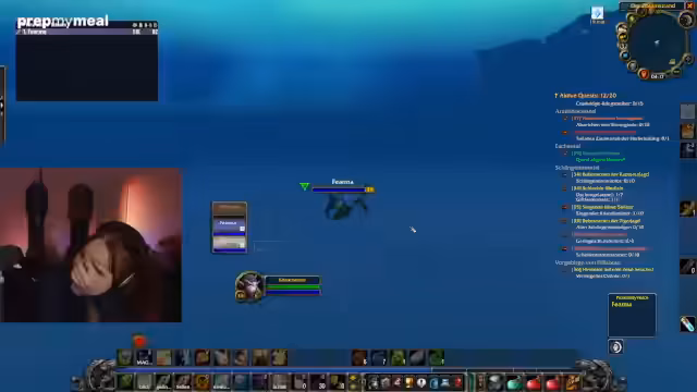 09:22:54Das Stream-Team erkundet ein unter Wasser liegendes Gebiet, das durch seine ungewöhnliche Mechanik besticht. Spieler kämpfen hier gegen Murlocs und müssen dabei eine spezielle Sauerstoffleiste managen. Als jemand zu weit ins Meer schwimmt, erhält er den Debuff 'Erschöpfung', der zum sofortigen Tod führt, wenn die Leiste voll ist. Dies führt zu stressigen Momenten und mehreren Close Calls, während die Gruppe versucht, Quest-Items zu looten, die teilweise durch Wände hindurchschwimmen und unerreichbar werden.
