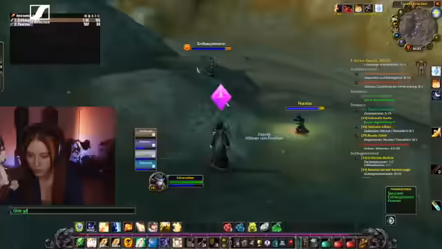 11:33:51Während der laufenden Quest wird der Streamer von einem Zuschauer angesprochen und gebeten, ein gemeinsames Foto zu machen. Diese spontane Interaktion wird als 'süß' und positiv wahrgenommen. Gleichzeitig kommt es zu PvP-Konfrontationen mit der Horde in der Nähe, und die Gruppe kämpft gegen mehrere Gegner gleichzeitig, darunter ein 'Arsch-Schrecken' und Kodo-Geister.