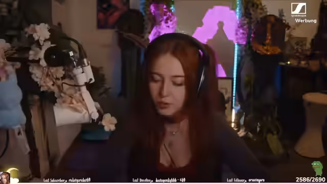 01:39:59Die Streamerin äußert sich zu ihren Gaming-Vorlieben, insbesondere zu ihrem 'Lieblings-Soul-Slack', wobei sie Sekiro als 'echt pornös geil' bezeichnet und betont, dass sie alle Bosse finden möchte. Sie erklärt, dass sie das Spiel nicht beenden will, weil sie nicht möchte, dass es aufhört. Anschließend werden verschiedene Video-Optionen diskutiert, darunter ein Jules-Video mit dem Titel 'Es war einmal in Deutschland' und ein Video aus der 'Frankfurter Saga' von Tomatolix. Sie ist unentschlossen, welches Video sie schauen soll, da sie Jules' Videos im Allgemeinen gut findet, aber das eine Ende nicht so gut war. Welse sind ein weiteres Gesprächsthema, wobei sie ihre Faszination für diese Fischart ausdrückt. Sie fragt sich, ob sie jemals ungeschminkt streamen oder sich im Stream schminken soll, und erwähnt, dass sie beides schon gemacht hat.