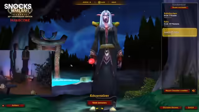 06:12:38Ein interaktives Jeopardy-Quiz über World of Warcraft-Wissen wird durchgeführt, bei dem die Nachtelfen-Fraktion mit 1000 Punkten Vorsprung gewinnt. Parallel dazu wird ein Nachtelfen-Meeting organisiert, an dem der Streamer und seine Gruppe teilnehmen möchten. Es entsteht Diskussion über die Wahl der Fraktion (Nachtelfen vs. Menschen) und die damit verbundenen Vor- und Nachteile, einschließlich Lore-Aspekten wie der Zerstörung von Teldrassil in Retail-Versionen.