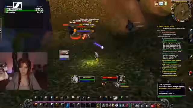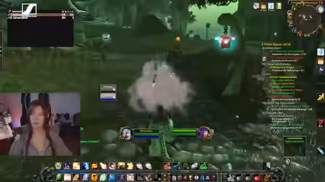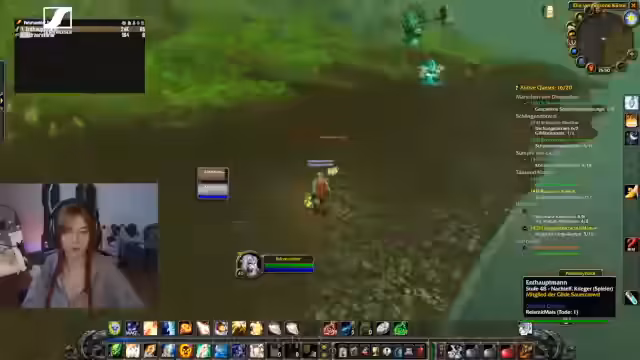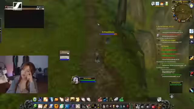 05:46:42Die Aktivitäten konzentrieren sich wieder auf das Gameplay. Es wird der Versuch unternommen, die 'Trollhexerei'-Quest zu starten, was scheitert, weil die Vorquests nicht erledigt wurden. Dies führt zu einer Diskussion über das Quest-Design und die Notwendigkeit, Gebiete vollständig zu erkunden. Die Streamerin agiert als Gruppenführer und versucht, Jäger-Quests im Jagdcamp zu erledigen, während sie gleichzeitig ihre Gruppe durch das Gebiet führt und Mobs ansammelt.