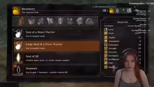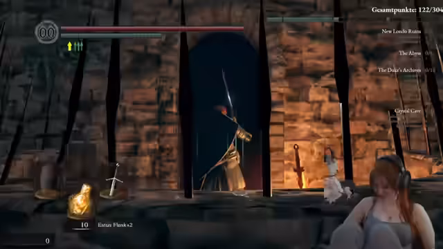 00:21:58Der Streamer erklärt, dass er nur noch heute Zeit für den Soulkeepers Run hat und er spätestens um 18 Uhr aufhören muss, da er um 19 Uhr seinen Zug nach Bali nimmt. Er versucht, seine Claymore zu leveln und überlegt, ob er Gift oder Blitz gegen den Stray Demon einsetzen soll. Er erwähnt auch, dass Maxim sehr erfahren in Dark Souls ist und auf einem Laufband spielt, um es sich schwerer zu machen.