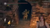 01:03:27Nach dem Sieg über den Stray Demon spielt der Streamer weiter und erreicht den Bereich um das Sen's Fortress. Er muss durch enge Korridore und Fallen navigieren, was er als stressig beschreibt. Er ändert seine Ausrüstung, um bessere Resistenz gegen Magie-Schaden zu erhalten, und kämpft gegen die Ritter im Bereich. Er versucht, so effektiv wie möglich zu spielen, da die Zeit für den Run knapp wird.