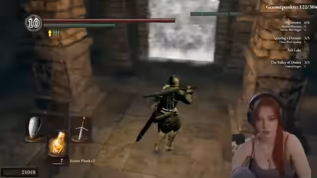 02:10:06Nachdem er mehrere Gegner besiegt hat, erreicht der Streamer das nächste Bonfire. Er ist noch immer im Zeitdruck für den Run und muss sich beeilen. Er sammelt weitere Punkte und erreicht das nächste Ziel des Soulskeepers Run. Er ist erleichtert, als er endlich sicher ankommt, obwohl der Weg dorthin schwierig war und er mehrere Male knapp dem Tod entging.