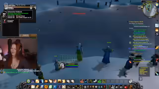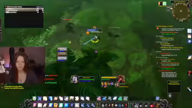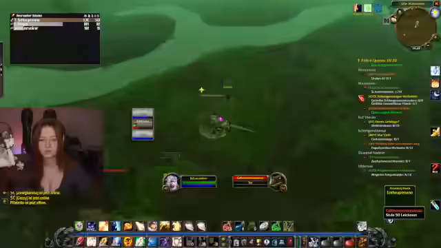 07:44:56Die Streamerin und ihr Mitspieler Matteo beginnen in der Hinterland-Region mit dem Questen, konzentrieren sich auf das Töten von Trollen und das Sammeln von Trollhalsketten. Dabei stellen sie fest, dass einige Quests als 'Drop-Quests' funktionieren, was sie anfangs nicht verstehen. Das gemeinsame Farmen wird durch technische Unannehmlichkeiten gestört, als ein Mitspieler in einem anderen Dungeon fast stirbt und ein anderer stirbt, was zu Diskussionen über Gruppenspannungen und Fehlentscheidungen führt.