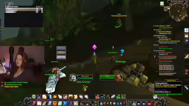 03:58:29Der Stream beginnt mit spielerischen Neckereien über einen anderen Spieler namens Sonja, der als 'garstiges Dreckstück' bezeichnet wird. Anschließend wird das gemeinsame Leveln im Un'Goro-Krater thematisiert. Die Streamerin bemerkt eine plötzliche Verhaltensänderung bei einem Spieler namens Mitashi, der ihr gegenüber freundlicher wird, was sie auf ein schlechtes Gewissen zurückführt. Sie plant, Mitashi um eine gemeinsame Spielgruppe zu fragen, zögert aber aus Unsicherheit.