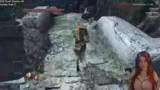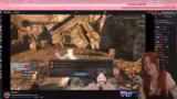 01:32:41Nach den langen persönlichen Abschweifungen kehrt die Streamerin zum Dark Souls 2 Gameplay zurück. Sie ist im Training und navigiert durch die anfänglichen Gebiete. Ihr Ziel ist es, ohne zu sterben so viele Gegner wie möglich zu besiegen, um Punkte für den Soulkeepers Run zu sammeln. Sie ist äußerst vorsichtig und ist bestrebt, alle potenziell gefährlichen Situationen zu vermeiden, wie z.B. den Sprung in eine Grube.