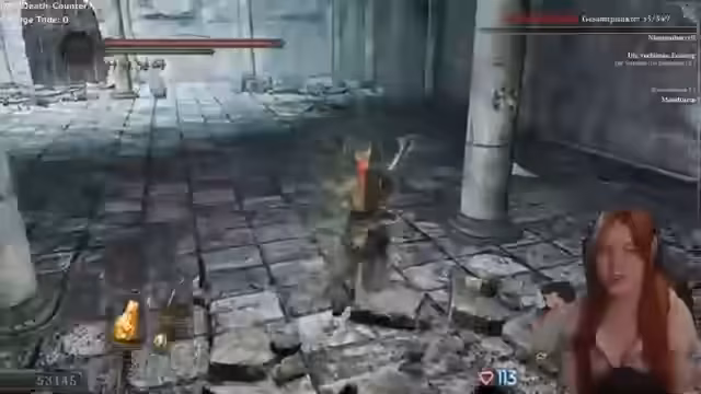 00:13:31Der Stream beginnt mit dem traditionellen Gruß an die Zuschauerinnen und Viewer. Dabei geht die Streamerin auf persönliche Themen ein, wie ihre Periode, und erwähnt ihre Absicht, am zweiten Mai einen Marathon im Spiel zu starten. Sie spricht über ihre Vorerfahrungen in Dark Souls 2 und ihre Ziele für den aktuellen Run, eine Top-Platzierung in der Soulkeepers-Wertung zu erreichen. Die Konkurrenz wird als stark beschrieben, und sie zeigt sich unzufrieden mit ihrer eigenen Punktzahl und den Trainingsfortschritten.