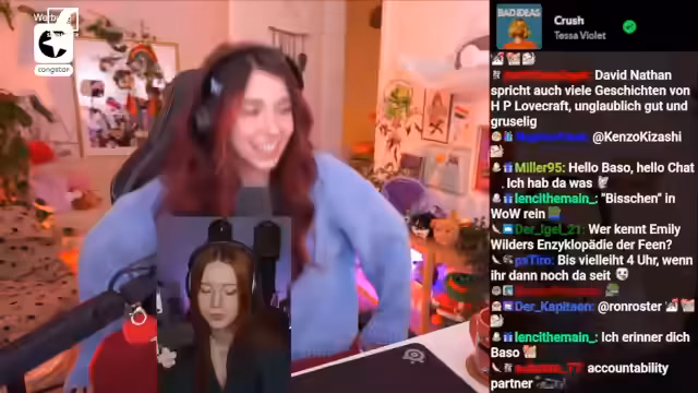01:29:28Ein lange zurückliegendes Missverständnis über Gulasch wurde erwähnt. Es wurden humorvolle Anekdoten über Befürchtungen beim Bäckerbesuch und die Bezeichnung für ein bestimmtes Gebäck namens 'Liebesknochen' geteilt, was zu Heißhunger führte. Nach einem Dank für einen Raid wurden die Gefahren von Social Media thematisiert, bevor sich die Streamerin dem 'Vollcontent' widmete und sich für das Anhören einer Sprachnachricht entschuldigte.