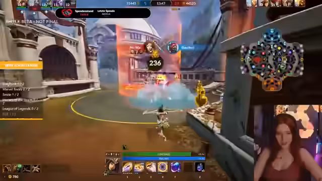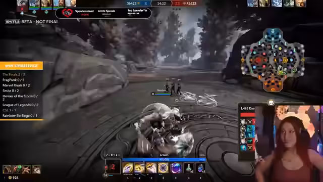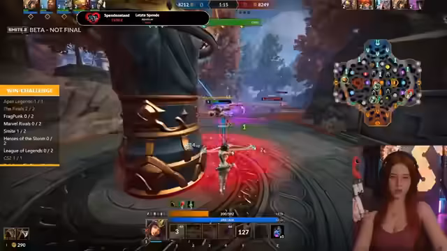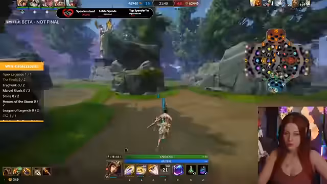 08:24:21Der Stream beginnt mit chaotischen Gameplay-Momenten in Smite. Es werden Probleme mit der Ultimaten-Fähigkeit eines Champions diskutiert und erste Minibosse bekämpft. Die Kommunikation im Team wirkt unkoordiniert, insbesondere in einem Teamfight, bei dem die Gegner mit den Fähigkeiten der Medusa und Anubis überlegen wirken. Spieleriscihevoll wird über die Champions und Builds gesprochen, während man versucht, einen mittleren Phönix zu nehmen und sich gegen den gegnerischen Druck stemmt.