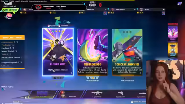 10:27:44Das Spiel wird von starken Momenten und guter Team-Kommunikation geprägt, insbesondere bei der Nutzung von Champion-Fähigkeiten und der Analyse der Karten. Gleichzeitig treten technische und persönliche Probleme auf, wie das Ausscheiden eines Teammitglieds wegen Verbindungsproblemen und ein plötzlicher Toilettenbesuch, was die Rhythmik unterbricht. Trotzdem wird das Spiel als sehr motivierend und 'geil' beschrieben, wobei die Mechaniken des Messer-Duels im Fokus stehen.