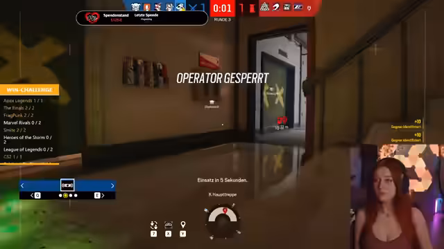 12:49:02Der Streamer ist mitten in intensiven Runden von Rainbow Six Siege. Er koordiniert sich mit seinem Team über Positionen und Taktiken, wie z.B. das Nutzen von Portalen, um Gegner zu flankieren. Es kommt zu engen Situationen, in denen die Teammitglieder sich gegenseitig helfen müssen, um die Bomben zu finden oder die Verteidigung aufrechtzuerhalten. Bei den Auseinandersetzungen kommt es auch zu unfreiwilligen Teamkills, die angesprochen und kommentiert werden. Der Fokus liegt auf strategischem Vorgehen und der Kommunikation mit den Mitspielern.
