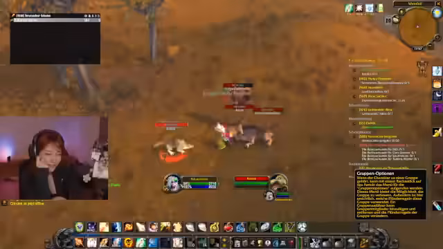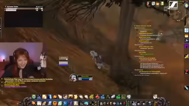 07:17:01Die Streamerin erkundet Gebiete gemeinsam mit ihrem Team und stößt auf Herausforderungen. Ein 'Rare Mob' kann nicht angegriffen werden, da er neutral ist. Sie diskutieren über passende Dungeons für ihre aktuelle Level-Stufe, wie Lower Blackrock Spire und Stratolme, und planen ihre Quests strategisch. Die Suche nach spezifischen Monstern, wie einem 'Seuchenhund', gestaltet sich schwierig, und die Beuteverteilung in der Gruppe ist ein wiederkehrendes Thema.