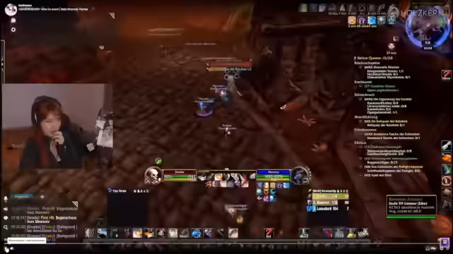 01:53:33Fokus liegt auf dem eigenen Fortschritt im Spiel, insbesondere auf dem Erreichen von Level 60 in World of Warcraft Hardcore. Die Streamerin stellt eine ungewöhnliche Anordnung von Gegnern in einem Kloster fest und plant, mit ihrer Gruppe Richtung Ausgang zu gehen. Es wird über den Tod von Spielern wie Nils berichtet, der kurz vor Level 60 in einem Ultra-Hardcore-Modus gestorben ist, was von der Streamerin als krasses Schicksal kommentiert wird.