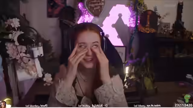 00:06:57Anfangs begrüßt die Streamerin ihr Publikum und äußert Verwirrung über den Chat. Sie erwähnt, dass sie alle Interaktionen im Chat sieht und sich dabei nackt fühlt. Sie erzählt, dass sie etwas für einen Mann mit Schnauzer aufnehmen musste und spielt mit der Vorstellung von Stille Post im Chat. Dabei wird deutlich, dass sie eine humorvolle und etwas verwirrte Art hat, die Zuschauer direkt anspricht und in ihre Gedanken einweiht.