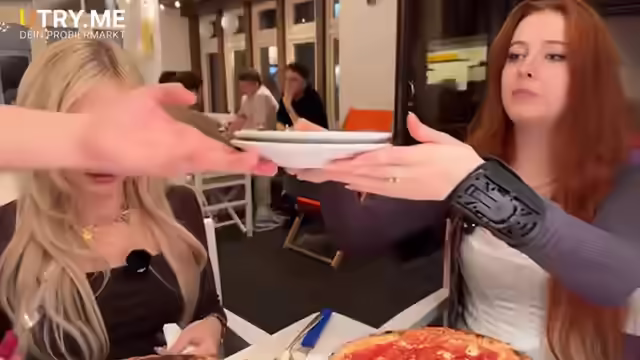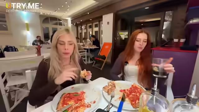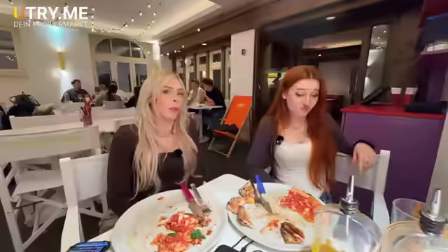 05:01:25Die Frauen beginnen, die Pizza zu essen und kommentieren das Aussehen und den Geschmack. Eine der Frauen ist froh, dass kein Oregano auf ihrer Pizza ist, obwohl sie ohne bestellt hat. Es wird diskutiert, ob es sich tatsächlich um Oregano handelt. Die Frauen finden die Reisbällchen im Nachhinein unnötig. Eine der Frauen hat Probleme mit der Aussprache bestimmter Wörter und wird von der anderen korrigiert. Sie üben die Aussprache von "Quark". Die Frauen schneiden die Pizza und essen sie auf unterschiedliche Weise. Eine der Frauen glaubt, dass es illegal ist, die Pizza so zu essen, wie sie es tut. Sie diskutieren über verschiedene Essgewohnheiten und ob man den Rand der Pizza mitisst. Eine der Frauen glaubt, dass sie die ganze Pizza nicht schaffen wird, wegen der sättigenden Vorspeise.