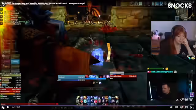 00:25:15Ein düsterer Wendung tritt ein, als die Streamerin den Tod zweier Gildenmitglieder, Vadim und Jan Hängenberger, während eines Raids bekannt gibt. Beide Spieler sind beim gleichen Bossgegnerselbst ums Leben gekommen, was die Streamerin als extrem gefährliche und beunruhigende Situation beschreibt. Sie erwähnt, dass sie sich die genauen Umstände der Todesfälle noch nicht angesehen hat, und es herrscht eine Trauernde und besorgte Stimmung unter den Zuschauern und im Stream.