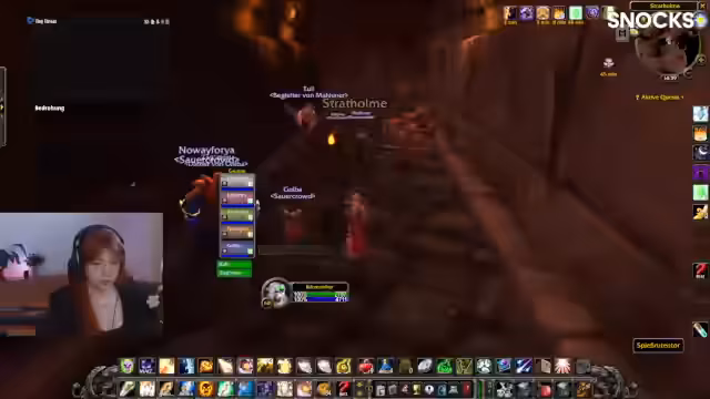 03:01:45Nach dem Tod der Gruppe im Dungeon wird die Ursache intensiv analysiert. Fehlertechnisch steht im Raum, ob das Öffnen einer Kiste und die damit verbundene Aggro-Range den fatalen Pull ausgelöst hat. Die genauen Umstände sind unklar, es kam möglicherweise zu einem ungeplanten Social-Pull, als der vierte Mob automatisch in Richtung eines Gitters lief. In der Paniksituation konnte keine der vorgesehenen Fähigkeiten wie der Priester-Bubble oder der Paladin-Todeswunsch rechtzeitig und korrekt eingesetzt werden, was zum totalen Wipe der Gruppe führte.