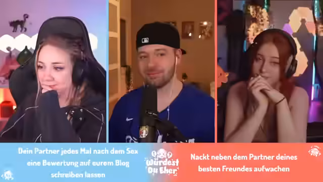 05:29:01Ein weiterer Fokus liegt auf Themen aus dem Bereich Beziehungen. Die Teilnehmer debattieren, ob sie lieber eine Nachricht erhalten würden, wenn ein Ex-Partner Sex hat, oder nie wieder Sex haben können. Die allgemeine Tendenz geht zu der Option, die Informationen nicht zu erhalten, um emotionale Belastungen zu vermeiden. Die Streamerin teilt dabei eine persönliche Anekdote über einen Ex-Partner, der bei ihr vor der Tür stand und sich einsam fühlte, was zu einer offenen und reflektierten Unterhaltung über das Überwinden von Trennungen führt.