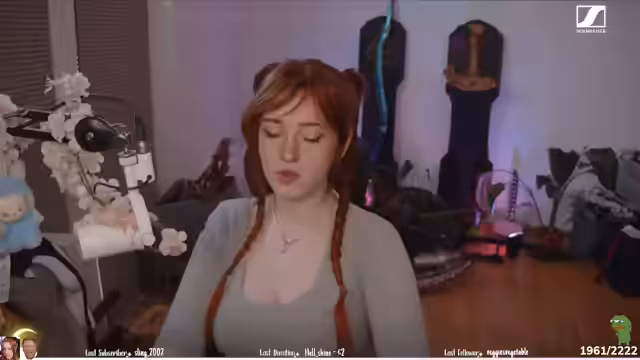 00:02:28Zu Beginn des Streams geht es sehr unstrukturiert und chaotisch zu. Die Streamerin wacht auf und wirkt desorientiert und in Gefahr. Sie wendet sich an den Chat mit Ausrufen wie "Mutter Maria am Geiste! Tag!" und fragt nach Raids oder unklaren Vorfällen. Thematisch berührt sie persönliche Erlebnisse wie einen verloren und wiedergefundenen Ring, der eine spontane und mysteriöse Begegnung auslöste. Der Ton ist geprägt von innerer Unruhe, Ablenkung und spontanen Gedankenwechseln.