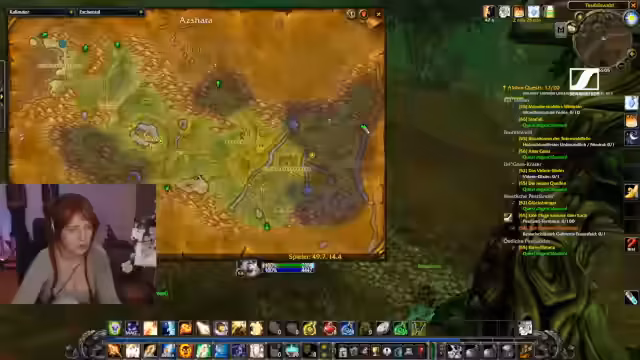 01:52:51Im Gameplay von WoW wird in Kalimdor weitergespielt. Ein wiederkehrendes Problem sind störende Gegner, die das Spiel unterbrechen. Der Streamer benutzt Granaten zur Abwehr. Im Chat werden verrückte Aktionen getätigt, wie das posten von seltsamen Bildern oder die Nennung von Namen, was zu ungewollten Inhalten führt. Der Ton bleibt humorvoll und leicht desorientiert.