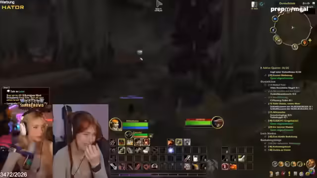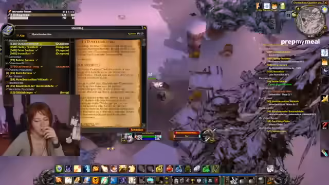 02:18:06Im Gameplay-Teil geht es um das Leveln in World of Warcraft, speziell um den Fortschritt in Winterspring und die Entscheidung, den Prinzessinnen-Quest nachzugehen. Es werden verschiedene Tode und Missgeschicke von Spielern, wie 'Dorsack', erwähnt und das Gilden-Meeting für Sonntag diskutiert. Die Streamerin teilt ihre persönlichen Erlebnisse mit, einschließlich eines Dates, das mit einer mysteriösen Person verbunden war, die ihren Ring im Schnee gefunden hat.