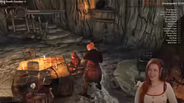 03:20:00Die Streamerin trifft auf einen Katzen-NPC und stellt sich vor, dass die Katze süß sein könnte. Sie erfährt von Items, die das Gameplay erschweren, wie zum Beispiel ein Ring, der einen für Gegner leichter sichtbar macht. Sie diskutiert darüber, ob sie einen bestimmten NPC töten soll, um einen Ring zu erhalten, da sie sich dabei unwohl fühlt, weil sie NPCs nicht töten möchte. Gleichzeitig bereitet sie sich auf die Herausforderung von Soulkeepers vor und denkt über ihre Vorgehensweise im Spiel nach.