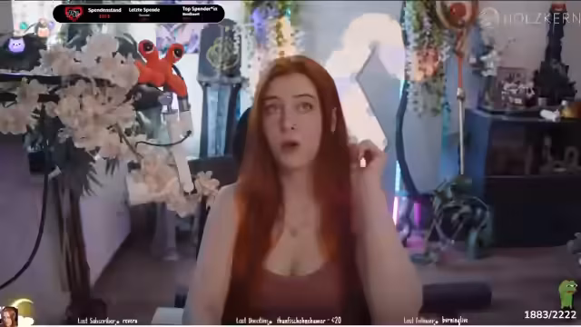 02:02:38Die Streamerin liest eine Wohnungsanzeige vor und plant, dort um 18 Uhr anzurufen. Sie erinnert sich ungern an ihre alte Terrassenwohnung. Sie spricht darüber, ob sie jemand anderen ihr Auto fahren lassen würde und äußert Bedenken, da sie ihr Auto am besten kennt. Sie vergleicht die Augen der Labubu-Figuren und scherzt über eine Versicherungsidee mit den Figuren. Sie gesteht, dass sie am liebsten den Labubus den Kopf abreißen würde und dass sie die beiden neueren Figuren nicht so spannend findet. Sie plant, die Figuren an ihren Rucksack zu hängen. Sie entdeckt einen Fuggler und vergleicht ihr Aussehen damit nach wenig Schlaf. Sie spricht über den schnellen Ausverkauf der Labubus und dass sie ihre von StockX hat, weshalb sie teurer waren. Sie schwört, keine weiteren Figuren zu kaufen und erwähnt, dass sie ein Streamzimmer dafür bräuchte.