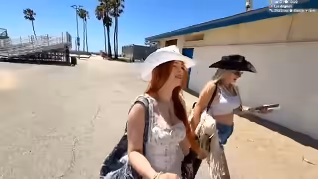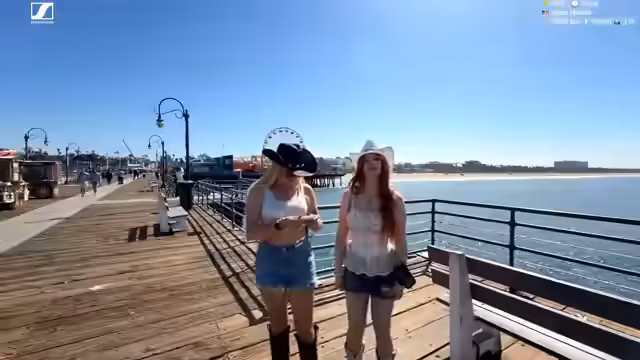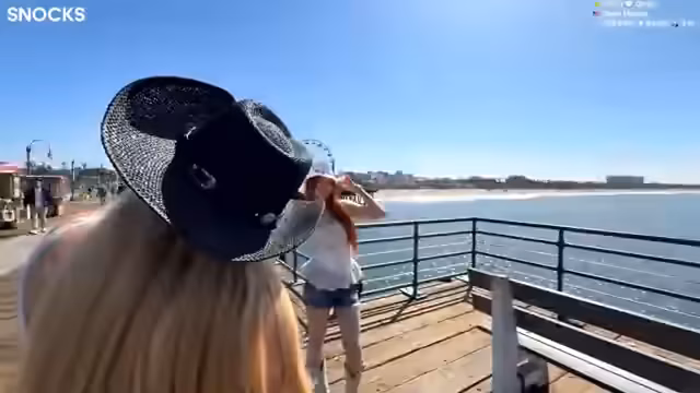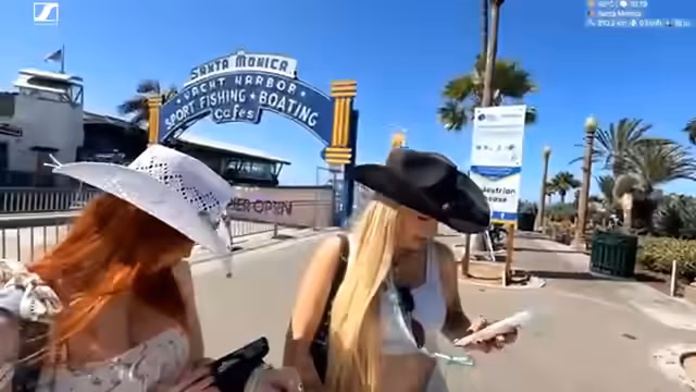 01:15:23Die Streamerin und ihr Begleiter beschäftigen sich intensiv mit Fotografie am Santa Monica Pier. Sie probieren verschiedene Posen und Einstellungen und diskutieren über Kameraführung, Lichtverhältnisse und Hintergründe. Die Streamerin macht sich Gedanken über ihr Outfit mit Cowboy-Hut und -Stiefeln. Es entstehen Diskussionen über die Verwendung von Relingfotos und die Professionalität ihrer Aufnahmen. Die Stimmung ist entspannt und humorvoll, mit vielen spontanen Aktionen.