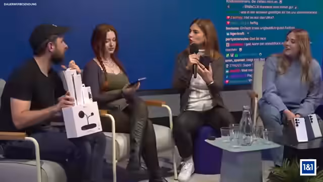 00:05:49Der Stream beginnt mit einem herzlichen Willkommen des Moderators Marios, der sich als Schauspieler und Synchronsprecher vorstellt. Er präsentiert das neu vorgestellte Samsung Galaxy S26 Ultra und kündigt einen Deep Dive an. Neben Marios sind die Experten Alexia (Samsung) und Jana (1&1) sowie die Twitch-Streamer Karrierkitten und Adam von geiler.TV anwesend, die gemeinsam das Gerät und die Kooperation zwischen Samsung und 1&1 vorstellen werden.