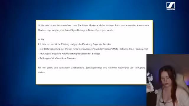 04:17:18Der Stream beleuchtet kritisch dubiose Geschäftspraktiken im Influencer-Marketing. Konkret geht es um mutmaßlich manipulative Chats, bei denen finanziell benachteiligte Männer durch vorgespielte emotionale Nähe zu hohen Geldzahlungen verleitet werden. Beispielhaft wird der Fall einer Influencerin mit über 16.000 Euro Einnahmen durch einen einzelnen Fan beschrieben, wo durch wechselnde Zuneigungsbekundungen und emotionalen Druck Gelder erschlichen wurden. Die Streamerin drückt Mitgefühl für die betrogenen Opfer aus und verurteilt das Verhalten der Agenturen, die solche Praktiken systematisch fördern.
