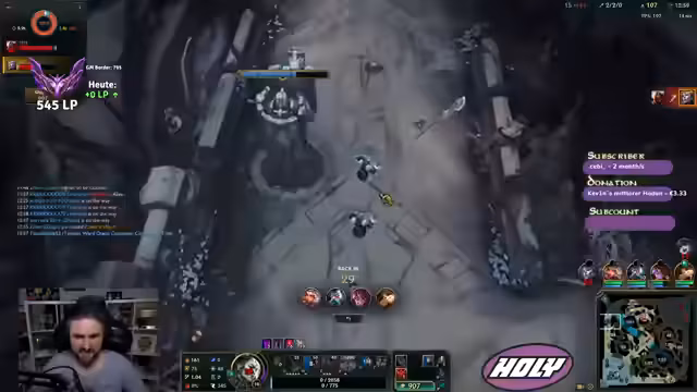 02:52:10Der Spieler erwähnt einen Zuschauer, der ihm bei der Steigerung seines Damage als Quinn geholfen hat. Er kritisiert die Qualität der Team-Kommunikation in den Spielen und beschreibt diese als 'unplayable'. Außerdem teilt er technische Updates mit: er hat seinen Hintergrund umgestaltet, eine neue Kamera und bessere Beleuchtung installiert, was einen erheblichen Unterschied für die Bildqualität im Stream macht.