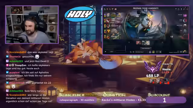 00:28:00Das Stream-Programm stürzt unerwartet ab, was der Streamer kommentiert und versucht, das Problem zu beheben. Nach dem Neustart ärgert er sich über verlorene Win-Rate mit seinem Lieblingschamp Zaheen. Er zeigt eine negative Viewer-Kommentar zu seinen Gnar-Plays, findet jedoch Humor darin und stützt sich auf seine eigenen Erfolge, um die Kritik zu entkräften. Zwischen den Spielen spricht er mit den Zuschauern über persönliche Themen wie seinen bevorstehenden Deutsch-Klausuren.