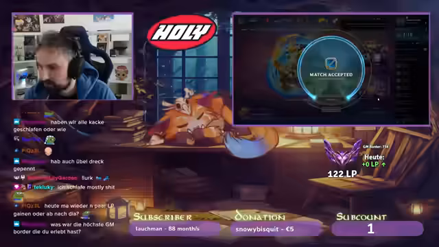 00:00:00Der Stream beginnt mit Begrüßungen und einem lockeren Smalltalk. Der Streamer spricht über seinen Schlaf, der die letzten Tage nicht optimal war, und seine aktuelle Stimmung. Er erwähnt, dass er gestreamt hat und nach seiner persönlichen Logik nie zu viel schlafen kann. Die Stimmung ist entspannt, aber es gibt auch Hinweise auf anstehende Ereignisse wie einen späteren Fußball-Stream am Abend. Ein großes Thema ist das League of Legends-Ranking. Er befindet sich in der Diamond-Liga und schildert die Frustration über das Matchmaking, da er oft schlechte Matchups und unkooperative Teammates erlebt, was ihn in einen 'Elo-Hell'-zustand versetzt.