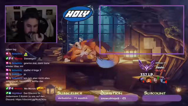 00:00:32Der Stream startet mit mehreren Wiederholungen von musikalischen Elementen wie 'Da, da, da, da' und verschiedenen Ausrufen. Der Streamer erwähnt Game of Thrones und zeigt Interesse an anderen Aktivitäten wie Raids mit dem Namen 'Progress'. Es gibt technische Hinweise auf den Chatverlauf und Serverplatzierungen. Der Streamer diskutiert über Champions wie Renekton und seine Performance im Spiel, wobei er Schwierigkeiten mit den aktuellen Spielsituationen anspricht.