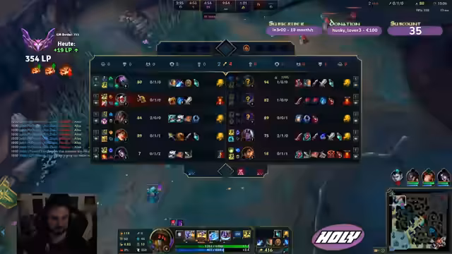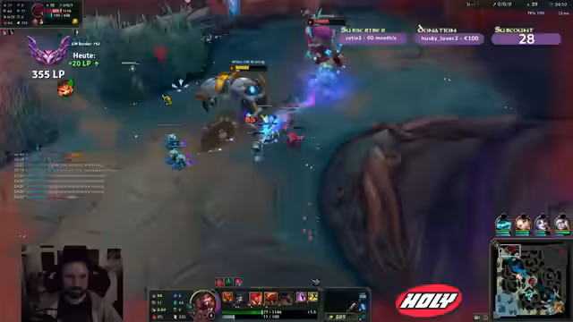 Es wurde League of Legends gespielt, mit einem klaren Fokus auf die Toplane. Dabei wurden aktuelle Meta-Champs wie Shen analysiert und ihre Stärken diskutiert. Zwischen den LoL-Spielen wurde als Abwechslung Warhammer 3 gespielt, über den Spielstand wurde mit der Gemeinschaft getauscht.