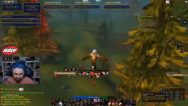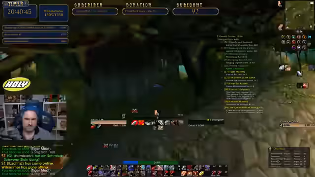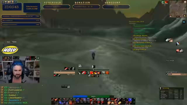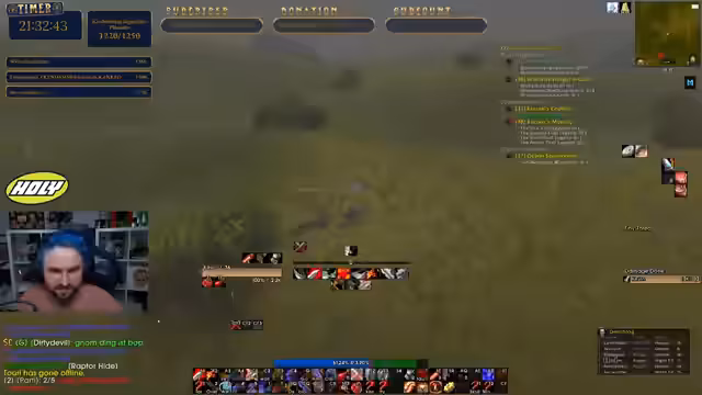 05:03:52Der Streamer konzentriert sich auf das Leveln seines Warriors und das Erledigen von Quests. Er erreicht Level 38, was er als sehr positiv empfindet. Gemeinsam mit Chat-Mitgliedern farmt er Mobs für eine Quest, die nach etwa 20 Minuten und dem Töten von rund 50 Gegnern abgeschlossen ist. Anschließend geht es für neue Quests in weiter entfernte Gebiete. Eine neue Aufgabe zielt auf das Besorgen eines weißen Bartes ab, wofür er kurz den Stream unterbricht, um sich einzuloggen und sofort wieder fortzufahren.