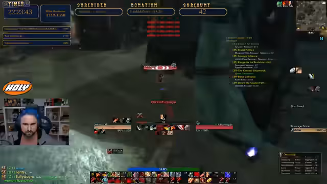 12:22:32Der Streamer beobachtet die Livestreams anderer, die gerade im Deadmines dungeonen. Er analysiert den Tod eines Tanks, der den Endboss mit unterlevelten Spielern angegangen ist und aufgrund von Resists und niedrigem Schaden gestorben ist. Er zieht daraus den Schluss, dass man als Tank auf ein angemessenes Level der Mitspieler achten sollte, um solche wipe zu vermeiden.