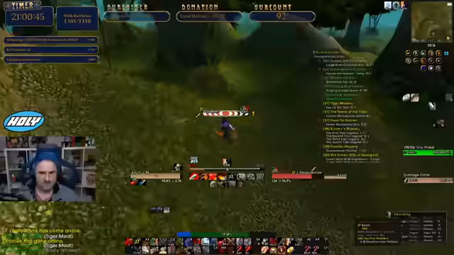 10:18:41Die Gruppe ist im Dungeon 'Deadmines' und steht vor dem Endboss, Mr. Smite. Es werden Taktiken besprochen, wie man den Boss angeht, einschließlich des Auspullens und des Managements von Adds. Es kommt zu einem kritischen Moment, als der Streamer stirbt und die Gruppe kurzzeitig in Panik gerät. Letztendlich wird der Boss besiegt und der Loot gesichert.