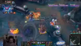 00:18:40In der Mid-Phase des Spiels trifft der Streamer mehrere Fehlentscheidungen. So wird ein Teamfight eingeleitet, obwohl das Team nicht bereit ist, was in einem verlorenen Kampf resultiert. Zudem wird ein Flash in einer aussichtslosen Situation verwendet, was als Desaster bezeichnet wird. Die ständigen Verluste in der Botlane frustrieren den Streamer zunehmend, und es kommt zu einem 'Throw des Jahrhunderts', das die Niederlage besiegelt.