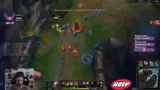 00:22:49Der Streamer spielt weiterhin Vladimir. Er macht einen Fehler, als er einen Kampf auf der Mitte beginnt, ohne zu wissen, dass der Gegner ein Twisted Fate mit Teleport hat. Er wird daraufhin von mehreren Gegnern angegriffen und verliert den Fight. Er gibt seinem Team die Schuld für den verpassten Kampf, besonders die Karma wird als schwach kritisiert. Er hat das Gefühl, nicht genügend getankt zu haben und den Kampf zu riskant begonnen zu haben.