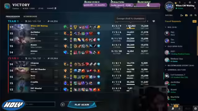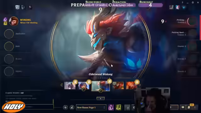 00:00:00Zu Beginn des Streams plant der Spieler, den Champion Kaiser zu spielen und kauft sich dafür einen Skin. Es gibt Diskussionen über die gegnerische Teamkompensation und potenzielle Picks und Bans. Der Streamer stellt fest, dass die Gegner Wolf, Jog, Sokratas, Kohai und Sterne sind, aber den Toplaner nicht in der Liste identifizieren kann. Aufgrund eines Verzögerung im Spiel startet das Match nicht sofort.