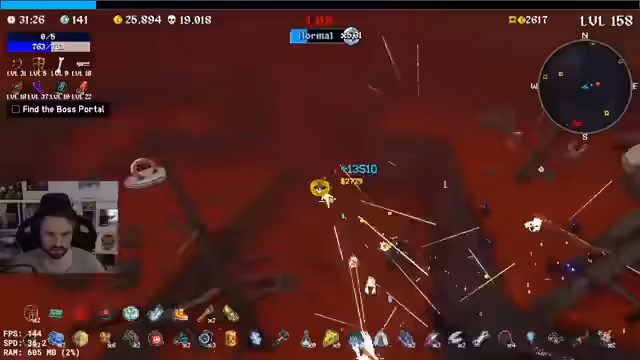 00:22:34Der Streamer erhält legendarye Gegenstände wie Power Gloves und Spicy Meatballs und diskutiert deren Stärken, insbesondere für Explosions-Chancen. Nach einem Schwierigkeits-Boost von 80% führt er intensive Kämpfe durch, bei denen ein Nuke ausgelöst wird und er über 30.000 Gegner besiegt. Der Endboss wird besiegt, aber der Streamer erlebt unerwartete Todesmomente und reflektiert über Überlebensstrategien. Items wie Chonky Plate und mehrere Schilder werden eingesetzt, um die Lebenserwartung zu erhöhen.