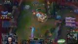 03:19:23Im lategame der Partie plant der Streamer, mit seinem Champion Jax zu einem Dragon zu TP'en. Er analysiert, dass der Gegner-AD-Carry schon sehr stark ist und nur noch auf einen Auto-Click nötig hat, um ihn zu eliminieren. Er beschwert sich, dass er nicht genug Schaden hat, um den gegnerischen Jax zu töten, und dass das Team unfähig war, den Dragon zu kontrollieren. Er erwähnt, dass er ein weiteres Item braucht, um konkurrenzfähig zu sein.