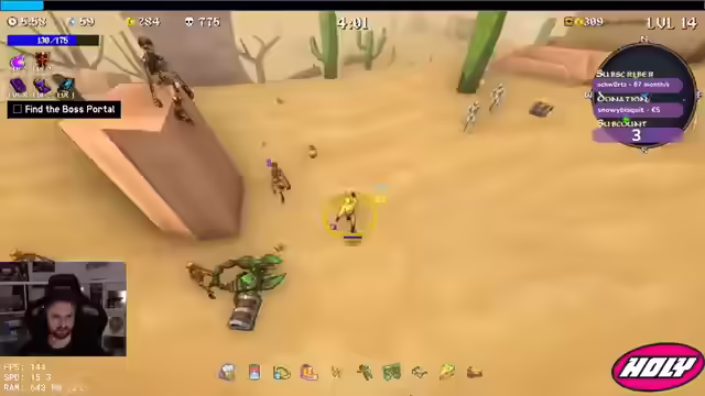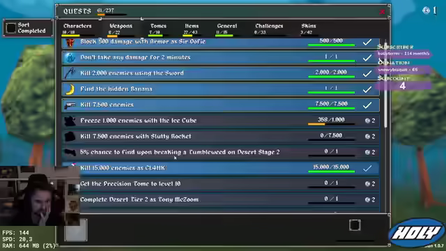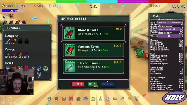 01:26:06Der Streamer will den Executioner und braucht Schwertkills. Er will den Bandit ausprobieren. Er nimmt Lack und Attack Speed. Er braucht mehr Schreine. Aegis ist einfach zu gut. Er geht Full Difficulty und wird von einem Kaktus getroffen. Er ist fucked. Er glaubt, er hat etwas durchgeskippt. Er will Projectile Tome, Attack Speed Tome und Damage. Er will mit dem Soldaten richtig durchdrehen und snowballen. Er geht tanky und will viel HP und B4 Ring. Er will full Tanki und Regeneration. Er weiß nicht, wie er Bosse töten soll, aber er skaliert über seine Waffe.