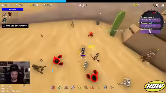 00:12:35Der Streamer findet endlich das Portal und trifft auf Anubis, der sich als unerwartet schwierig erweist, da man nicht einfach durch ihn hindurchlaufen kann. Er muss eine Strategie entwickeln, um zu überleben, da er nur wenig Zeit hat, bevor es noch schwerer wird. Er schafft es, T1 der Wüste abzuschließen und überlegt, ob er mit Monkey weiterspielen soll, entscheidet sich aber dagegen, da die Map für diesen Charakter ungeeignet scheint. Stattdessen erwägt er Robinette. Er packt Koffer für den Urlaub nach Grand Canaria. Er konzentriert sich darauf, Airborne zu verbessern und einen Schal zu holen, der sich im Westen befindet. Trotz anfänglicher Schwierigkeiten und nur einem Projektil versucht er, das Beste aus seiner Situation zu machen und Spaß am Spiel zu haben.