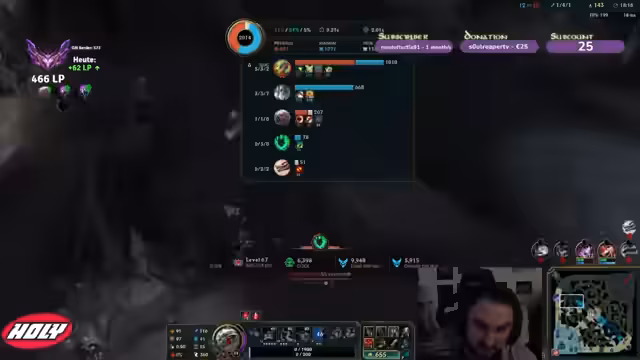 02:56:31Der Streamer äußert sich überrascht über den hohen Schaden eines Champions und diskutiert alternative Item-Builds. Er reflektiert über den bisherigen Spielverlauf und die vergebenen Möglichkeiten, das Spiel zu dominieren. Trotz der schwierigen Situation bleibt er optimistisch und betont die Möglichkeit, das Spiel noch zu gewinnen. Er analysiert die Teamdynamik und die Notwendigkeit, strategische Ziele zu erreichen. Er kommentiert die Aktionen der Gegner und die daraus resultierenden Konsequenzen für das eigene Team. Es wird die Bedeutung von Teamplay und die Notwendigkeit, aufmerksam zu sein, hervorgehoben. Er reflektiert über den Verlust von LP und äußert Bedauern über verpasste Chancen. Trotz der Frustration bleibt er fokussiert und sucht nach Möglichkeiten, das Spiel zu drehen. Er spricht über persönliche Vorlieben beim Bannen von Champions und äußert seine Abneigung gegen bestimmte Charaktere. Es wird die Bedeutung von Spaß am Spiel betont, auch wenn die Situation schwierig ist.